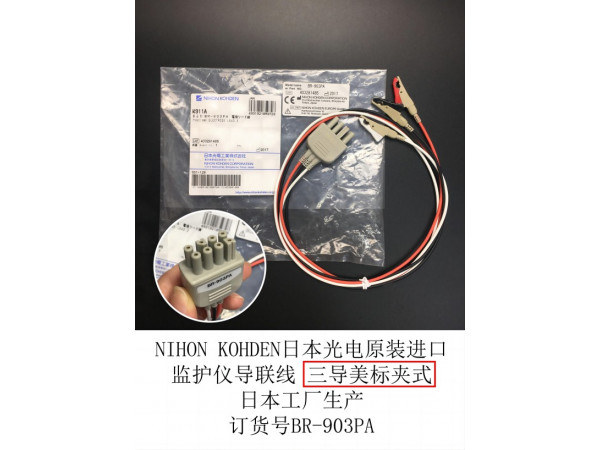 產品說明:NIHON KOHDEN日本光電監(jiān)護儀原裝導聯(lián)線 三導美標夾式 遙測 K911日本工廠生產訂貨號BR-903PA光電監(jiān)護儀BSM-1700 BSM-3000 BSM-630