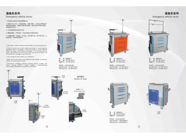 產(chǎn)品說明:1.ABS模具成型臺(tái)面,鋁合金型材立柱;2.臺(tái)面成凹型,安全置物;3.側(cè)板背板均選用鋁塑板拼裝;4.柜體采用多只鋁合金抽屜,方便藥