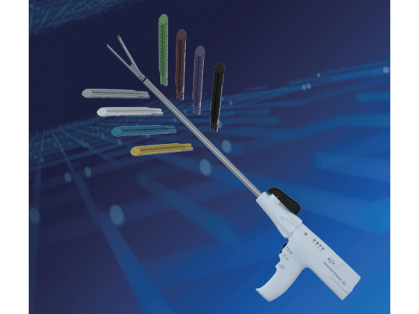 產(chǎn)品說明:產(chǎn)品由電動吻合器和組件組成。電動吻合器由電動手柄、電池盒、按鈕、旋轉(zhuǎn)頭、控彎扳手、槍管、釘砧、釘倉座、切割刀組成。組件由