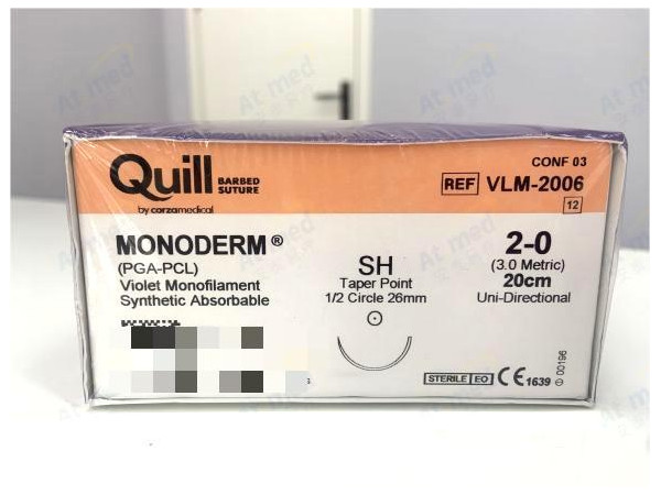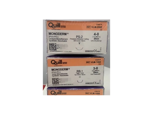產(chǎn)品說明:1、Quill可吸收性外科縫合線表面帶有倒刺,在縫合時可自動閉合傷口,無需打結(jié),可減少手術時間;2、Quill縫合后傷口張力可沿縫線