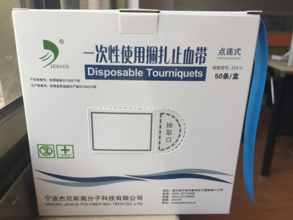 產(chǎn)品說(shuō)明:本產(chǎn)品涉及的是醫(yī)療救治中輸血,輸液,抽血,止血時(shí)使用的一種一次性止血帶。該連抽式一次性止血帶的特點(diǎn)是,成本低,患者經(jīng)濟(jì)負(fù)