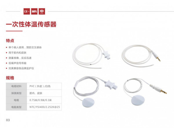 產(chǎn)品說(shuō)明:1.一次性使用,杜絕交叉感染,安全性更高2.產(chǎn)品規(guī)格齊全,體表、直腸、鼻腔、食道、耳道3.采用高精度NTC熱敏電阻,測(cè)量準(zhǔn)確度誤