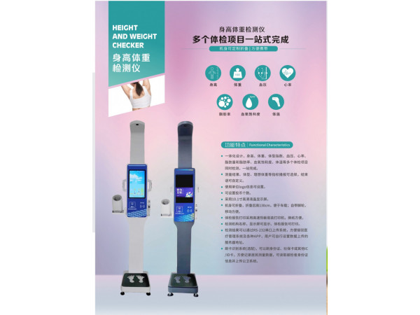 產(chǎn)品說明:HW-600B 超聲波身高體重測量儀通過微電腦控制,選用進口探測器, 高精度傳感器,自動快速精確測量身高,體重,血壓,心率,測量結(jié)果數(shù)碼顯示, 清晰語音播報,高速...