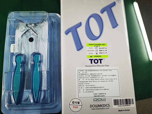 產(chǎn)品說(shuō)明:TOT由兩個(gè)螺旋狀手柄和一個(gè)帶有透明保護(hù)膜的無(wú)菌網(wǎng)帶構(gòu)成,螺旋狀設(shè)計(jì)的針形裝置可以安全精確地透過(guò)閉孔到達(dá)陰道切口。不可吸收