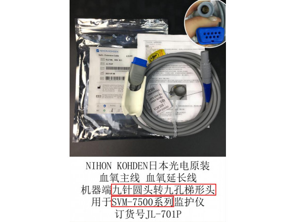 產(chǎn)品說(shuō)明:NIHON KOHDEN日本光電原裝 血氧主線 血氧延長(zhǎng)線 機(jī)器端九針圓頭轉(zhuǎn)九孔梯形頭 用于SVM-7500系列監(jiān)護(hù)儀 訂貨號(hào)JL-701P光電監(jiān)護(hù)儀BS