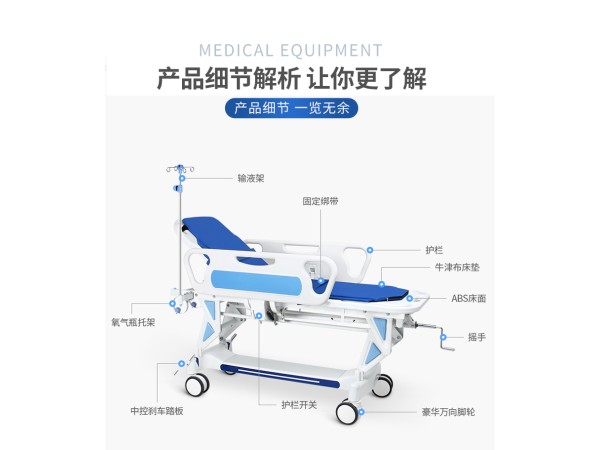 產(chǎn)品說明:適用范圍:用于醫(yī)療機構(gòu)運送、移動患者。適用場景? 急診搶救、ICU/CCU 重癥轉(zhuǎn)運? 手術(shù)室與病房雙向?qū)? 普通病房轉(zhuǎn)科、檢查