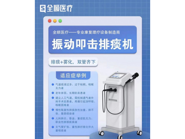 產品說明:通過振動叩擊,改善患者肺部血液循環(huán)狀況,協(xié)助排除呼吸道分泌物。振動叩擊排痰機是根據(jù)物理定向叩擊原理設計的,基于臨床胸部物