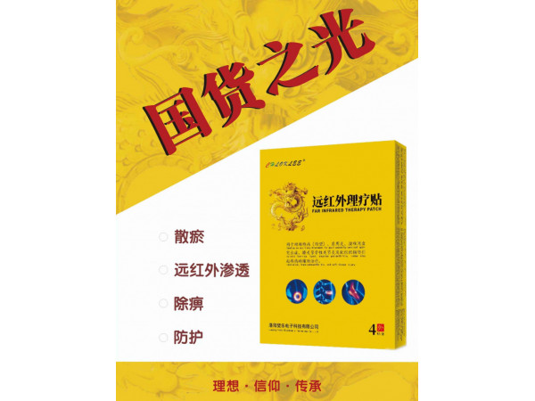 產(chǎn)品說(shuō)明: 遠(yuǎn)紅外理療貼是采用先進(jìn)的熱壓法涂布工藝和透皮吸收技術(shù),配以高科技的材料制成的一種新型的物理治療及康復(fù)外用貼劑,屬二類醫(yī)