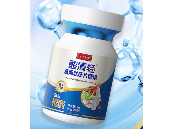 產(chǎn)品說明:【產(chǎn)品名稱】酸清輕葛菊肽壓片糖果【產(chǎn)品規(guī)格】0.5gx60粒,50盒/箱【配料表】山梨糖醇、玉米須粉、菊苣粉、異麥芽酮糖醇(食用量