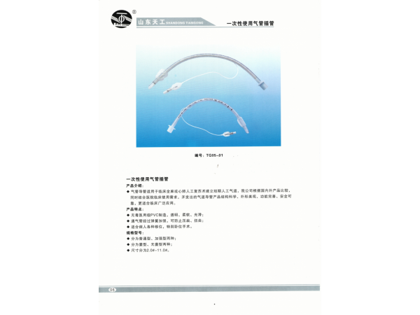 產(chǎn)品說(shuō)明:一次性使用氣管插管由接頭,指示球囊、充氣管、套囊等組成,其中2.5mm-4.5mm為無(wú)套囊插管,5.0mm-11.5mm為有套囊插管,一次性使