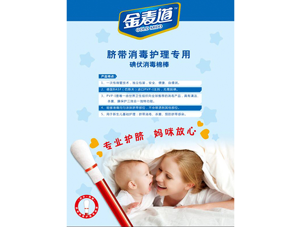產(chǎn)品說明:本品為充有聚維酮碘溶液的管狀棉棒,其中聚維酮碘溶液的有效碘含量為0.45%-0.55%適用于新生兒的臍帶消毒護(hù)理及注射、輸液前的皮膚消毒。