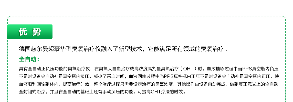 【產(chǎn)品類別】康復(fù)儀【批準(zhǔn)文號】國械注進20153543555【招商區(qū)域】全國【產(chǎn)品賣點】高濃度高劑量臭氧治療【產(chǎn)品說明】德國赫爾曼超豪華型臭氧治療儀融入了最新技術(shù),它能滿足所有領(lǐng)域的臭氧治療。 北京大道似水科技有限公司是德國赫爾曼在中國的唯