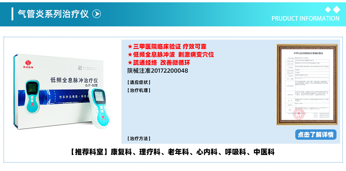 1.華漢針神低頻全息脈沖自動(dòng)尋找病變穴位,通過對(duì)穴位刺 激,促進(jìn)氣管炎、慢性支氣管所致的氣管損傷修復(fù),使柱狀 上皮細(xì)胞的病理性損害得以減輕。 2.華漢針神低頻全息脈沖通過疏通經(jīng)絡(luò)、調(diào)和氣血,改善輕 微循環(huán)障礙,起到緩解、防治氣管炎、慢性支氣管炎等疾病 的作用。 耳全息+手全息+足全息+體穴療法同時(shí)治療 |