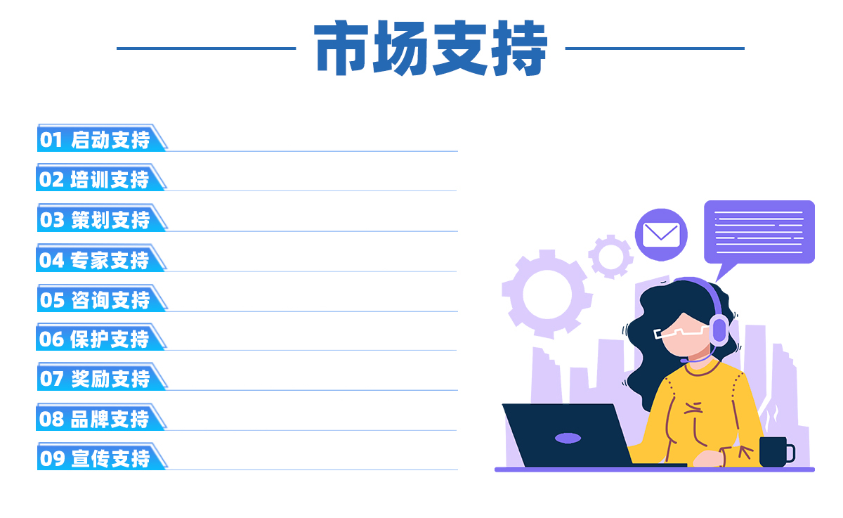 營銷技巧賦能,產(chǎn)品知識(shí)專業(yè)講解,市場運(yùn)作精細(xì)化指導(dǎo) 提供各階段市場運(yùn)作策劃方案和大型活動(dòng)方案 專家團(tuán)隊(duì)開設(shè)直播講座、在線解答,線下診療 全國統(tǒng)一服務(wù) 電話 規(guī)范市場管理,保護(hù)經(jīng)銷商利益 會(huì)員轉(zhuǎn)化獎(jiǎng)勵(lì),二次開發(fā)獎(jiǎng)勵(lì),年度獎(jiǎng)勵(lì) 整店輸出方案,營銷短視頻,新媒體宣傳,社群推廣內(nèi) 容輸出,宣傳物料等 百度推廣等傳統(tǒng)媒體,新媒體推廣,其他媒體宣傳 |