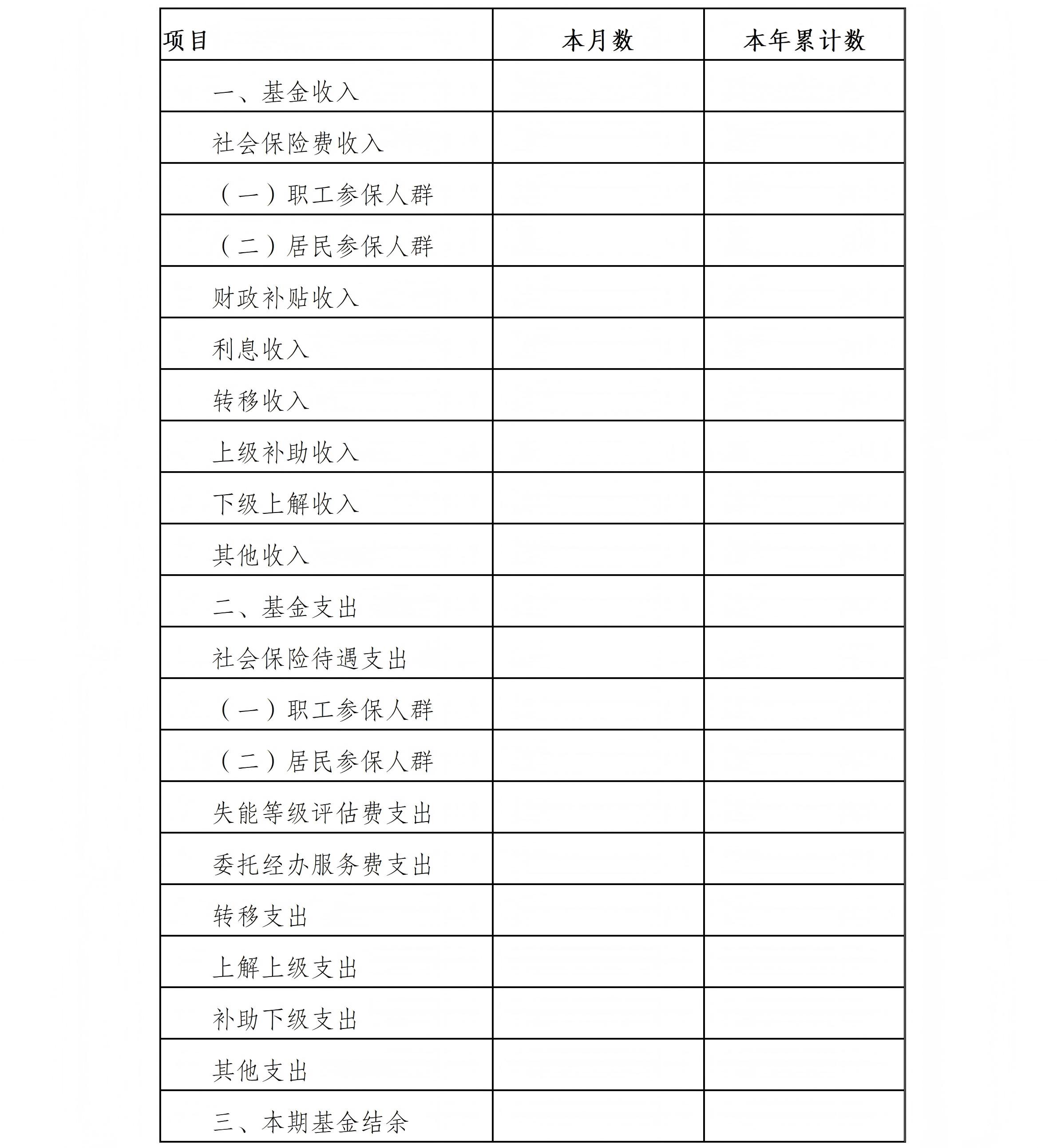 (一)長期護理保險基金的收支表格式和編制要求。