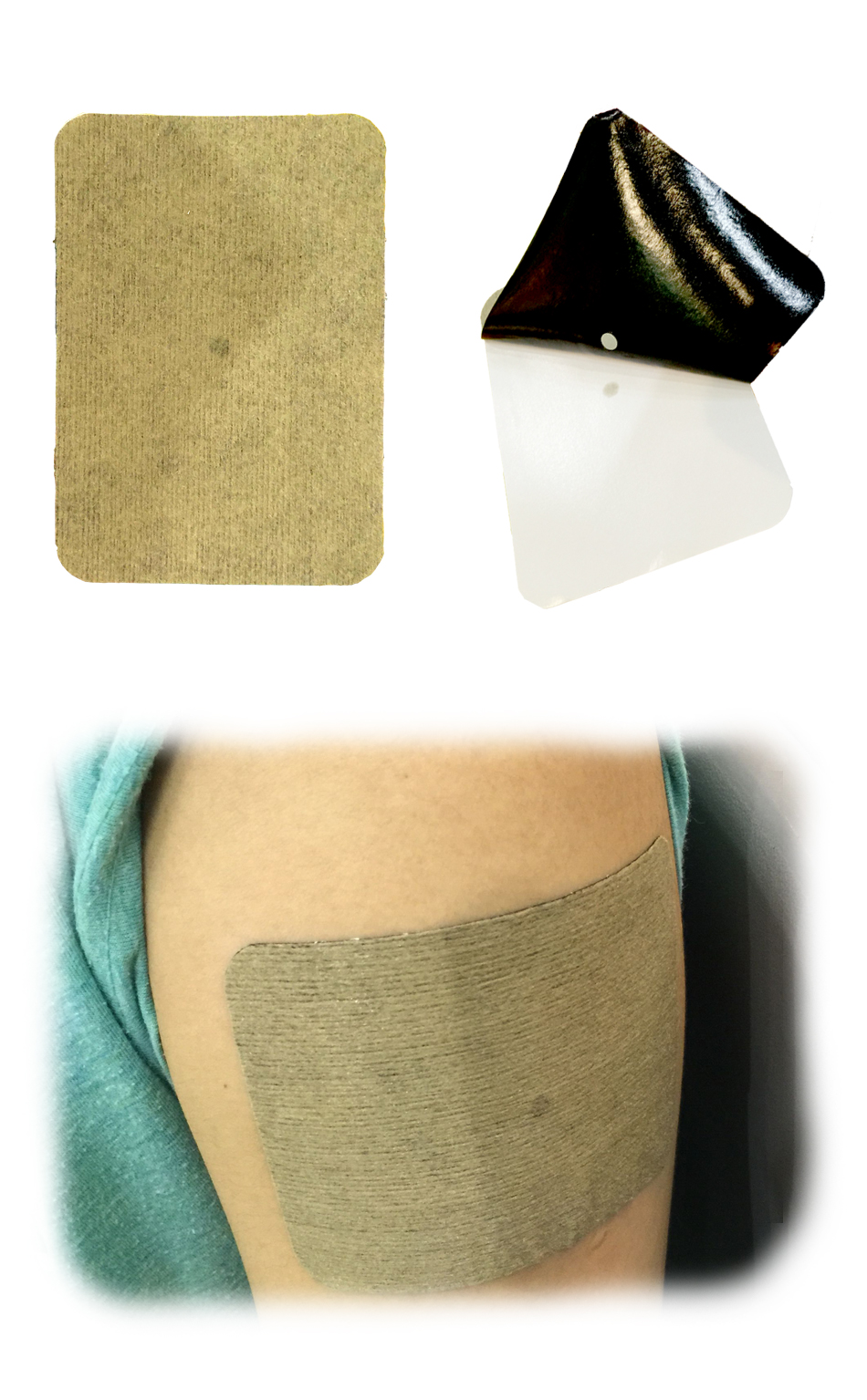 【主要結(jié)構(gòu)】由背襯布、粘膠層、防粘覆蓋紙組成。背襯布采用羅布麻無紡布。粘膠層主要由醫(yī)用壓敏膠、遠(yuǎn)紅外陶瓷粉、磁片組成