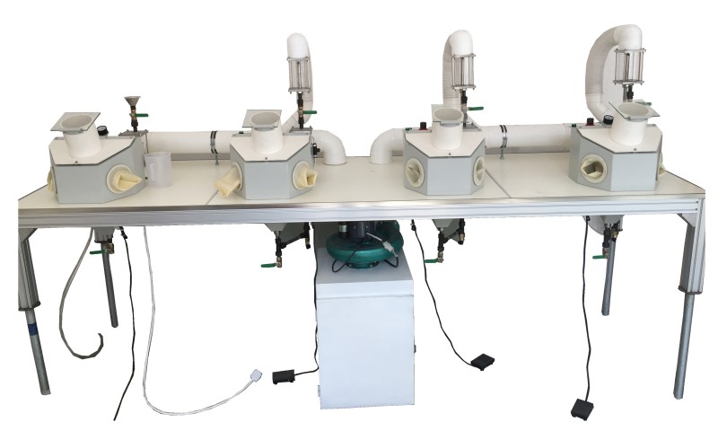 ??該設(shè)備與傳統(tǒng)的噴砂設(shè)備相比,噴砂加工效率更高,質(zhì)量更好,加工成本更低,更加節(jié)能,更加環(huán)保。噴砂過程的控制是通過人工腳下的腳踏控制,控制過程更加人性化,簡便易于操作。加工過程中的磨料是在封閉的系統(tǒng)中自動(dòng)運(yùn)行。Z-15A內(nèi)安裝了砂料的控制裝置,該裝置能控制每一次的噴砂量,使被加工工件質(zhì)量更精細(xì)。提高了工作效率,減少甚至杜絕烤齒牙在噴砂過程中“蹦齒”現(xiàn)象,保證加工件的成品率。該設(shè)備能自動(dòng)完成磨料和粉塵的自動(dòng)分離。并且磨料噴射出噴孔(噴槍)后能自動(dòng)回流到料斗內(nèi),粉塵被輸送到粉塵箱內(nèi)??朔藗鹘y(tǒng)噴砂機(jī)噴出的磨料很難收回砂塵分離難的問題,降低了成品。與傳通的噴砂設(shè)備相比,該型設(shè)備更加環(huán)保。該設(shè)備具有封閉的吸風(fēng)除塵裝置,能自動(dòng)完成選砂除塵聯(lián)動(dòng)功能。將低于標(biāo)準(zhǔn)的磨料和粉塵輸送到專門的儲(chǔ)塵箱內(nèi),合乎標(biāo)準(zhǔn)的磨料在系統(tǒng)內(nèi)照常運(yùn)行。工作砂和粉塵是在系統(tǒng)內(nèi)封閉中運(yùn)行,無外部瀉漏。保障了員工的身體健康減少環(huán)境的污染,符合國家對(duì)企業(yè)的環(huán)保標(biāo)準(zhǔn)要求。該裝置具有自動(dòng)定時(shí)控制功能,整個(gè)組合系統(tǒng)共同使用一個(gè)電控定時(shí)系統(tǒng)。工作時(shí),吸塵風(fēng)機(jī)按設(shè)定程序運(yùn)行。工作人員觸動(dòng)單獨(dú)一臺(tái)噴砂機(jī)的踏板,對(duì)風(fēng)機(jī)的開關(guān)進(jìn)行操作控制。