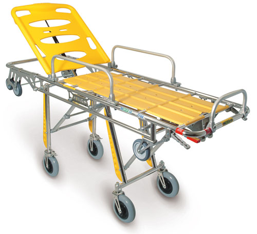 8.擔(dān)架車頭側(cè)上車位置可以細(xì)微調(diào)整,改變擔(dān)架上車高度。適應(yīng)不同類型救護(hù)車需要