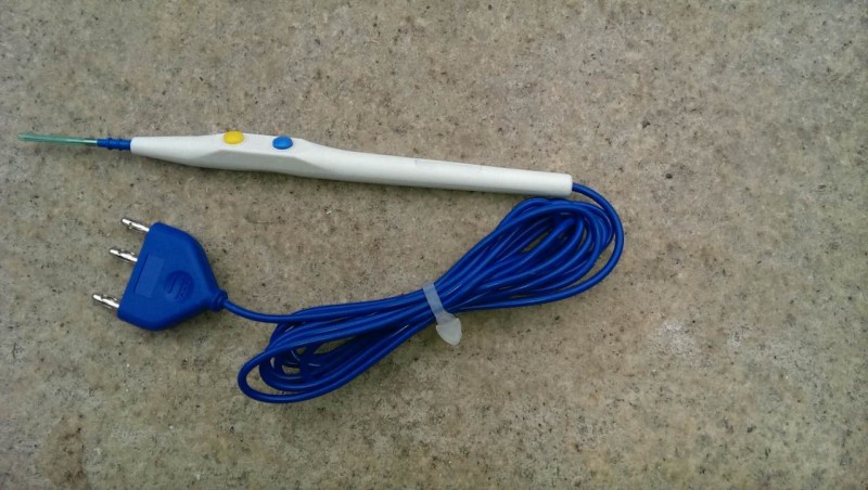 ??? 3、手柄上的黃色按鈕按下做切割,藍(lán)色按鈕按下做電凝。