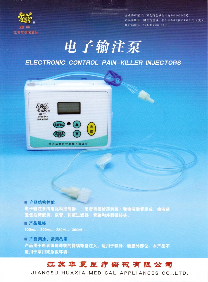 產(chǎn)品用于患者鎮(zhèn)痛藥物的持續(xù)微量注入,適用于靜脈硬膜外部位。