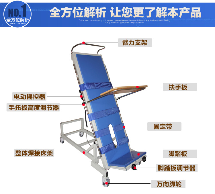 家用醫(yī)用電動(dòng)站立床護(hù)理床 癱瘓直立床訓(xùn)練床下肢恢復(fù)床產(chǎn)品說明: