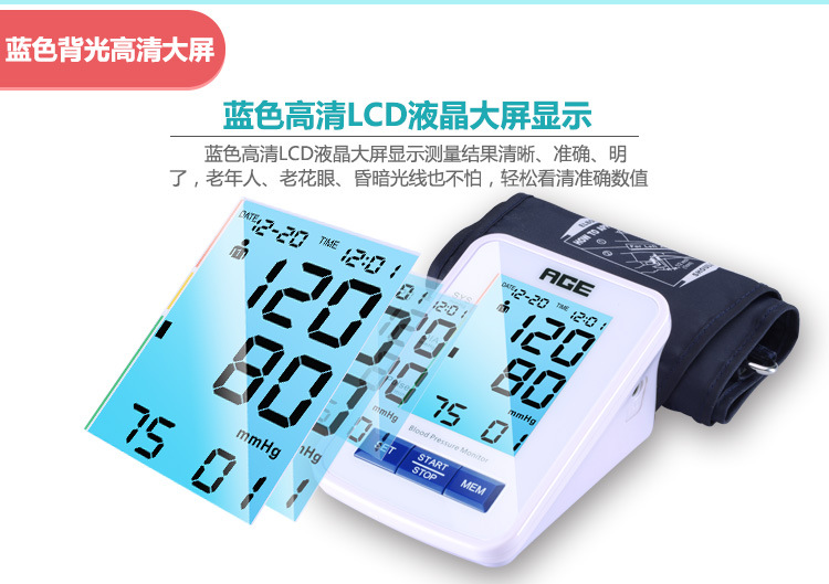 智能控制,藍(lán)色背光屏幕,精準(zhǔn)監(jiān)測血壓!