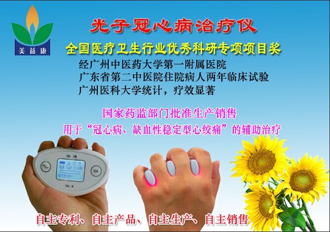 ? ? ??光子冠心病治療儀(心??祻?fù)治療儀)是一種以半導(dǎo)體作為載體、采用650納米波長(zhǎng)、使用5毫瓦功率、用于治療冠心病的低能量半導(dǎo)體激光治療儀器。?? ? ??通過(guò)照射心包穴、刺激心經(jīng)及心包經(jīng)治療冠心病。屬于國(guó)家Ⅱ類(lèi)醫(yī)療器械產(chǎn)品。