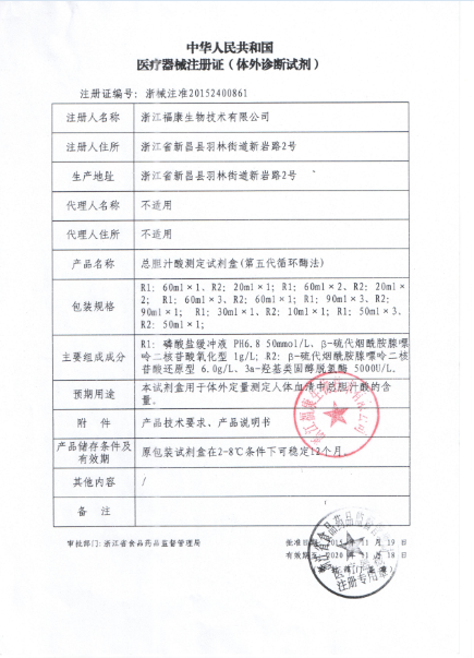 總膽汁酸測(cè)定試劑盒(第五代循環(huán)酶法)產(chǎn)品說(shuō)明: