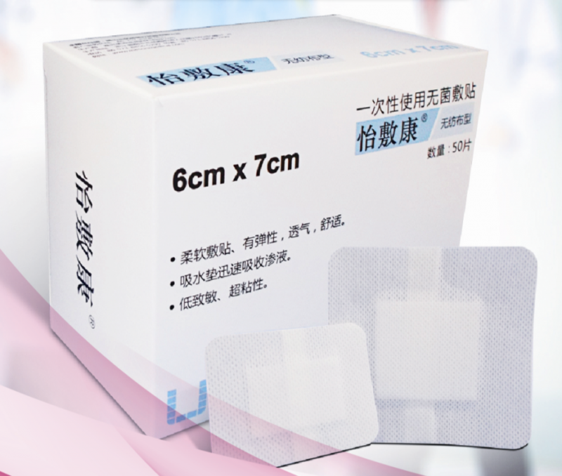 “怡敷康”自粘傷口無菌敷料,由醫(yī)用無紡布涂覆醫(yī)用壓敏膠,再復合上吸收墊和離型紙構成。