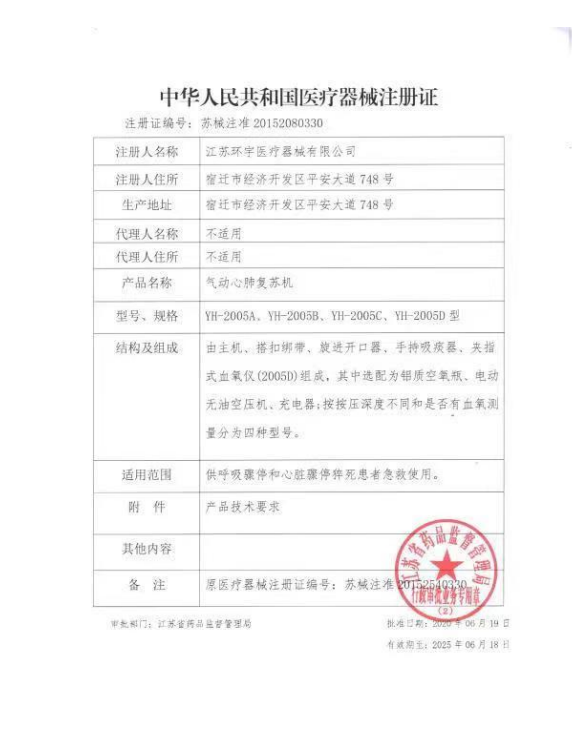環(huán)宇 氣動(dòng)心肺復(fù)蘇機(jī) YH-2005A產(chǎn)品說明: