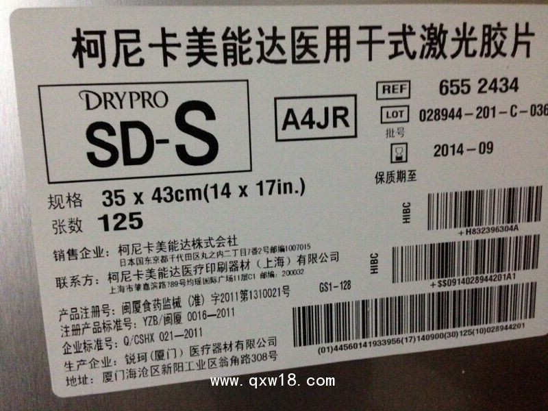 ?南宮市鑫俊感光材料銷售公司下屬的大型醫(yī)用膠片商業(yè)企業(yè),是國內(nèi)醫(yī)用膠片重要的收購、批發(fā)、銷售基地之一。專營各類進(jìn)口、國產(chǎn)醫(yī)用膠片,品種規(guī)格達(dá)210余種。經(jīng)營方式以批發(fā)、代理和醫(yī)院直銷為主,建立了一支專業(yè)的營銷隊(duì)伍。 總代理代理主銷售產(chǎn)品目前有醫(yī)用膠片,、品種: 柯達(dá)、富士:激光膠片、感藍(lán)X光膠片、感綠X光膠片、CT膠片、X光膠片自動處理系統(tǒng)、沖洗套藥。 代理:柯達(dá)、日本富士、阿爾梅、日本柯尼卡、愛克發(fā)等醫(yī)用膠片 醫(yī)用干式激光膠片:柯達(dá):DVB,EIR-7,EHN-7,HQB,EIR-23 富士:DI-AT,DI-HT,DI-HL,MDI-HLJ 柯尼卡:SD-P;SD-Q 愛克發(fā):DT1B,DT2B 醫(yī)用膠片沖洗套藥:樂凱、柯達(dá) 民用膠卷、相紙、沖洗套藥 工業(yè)探傷X光膠片及沖洗套藥 特種膠片及沖洗套藥:PA陶瓷片20*24、電鏡片、熒光縮影片等 公司是河北醫(yī)用膠片行業(yè)協(xié)會的副會長單位、“河北醫(yī)用膠片誠信企業(yè)”、河北省工商局“守合同、重信用A類企業(yè)”。河北省財(cái)政局、國稅局、地稅局《A類納稅信用等級證書》單位,2008年更被授予河北省“誠信創(chuàng)建企業(yè)”。 ;歡迎來電咨詢 連經(jīng)理(可開增票及普票)