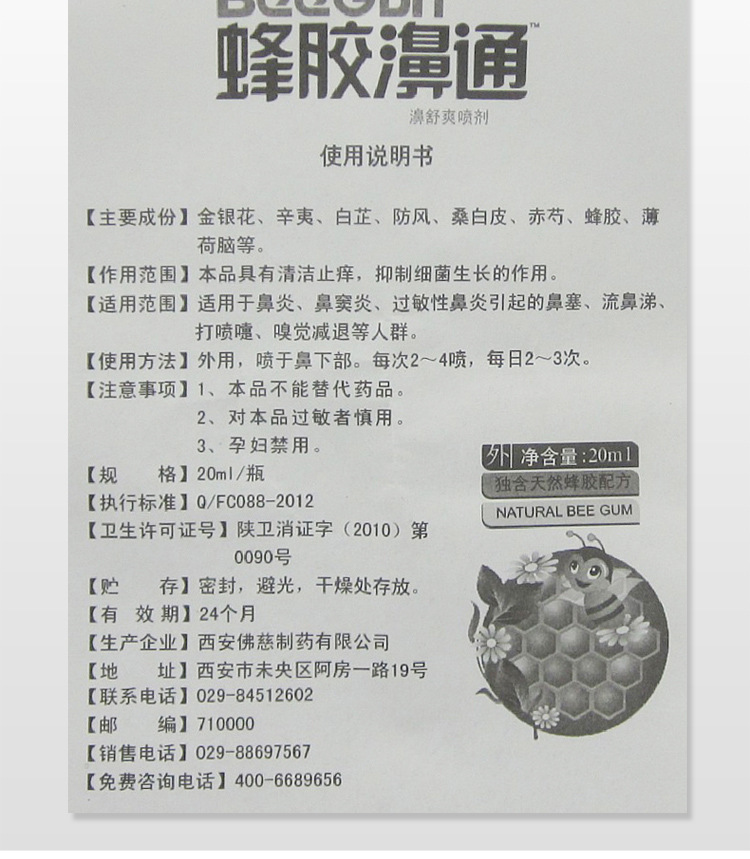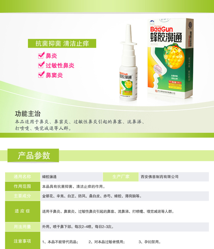 【有效成分】:金銀花、菊花、辛夷、鵝不食草、黃連、防風(fēng)、薄荷、冰片、蜂膠等等。