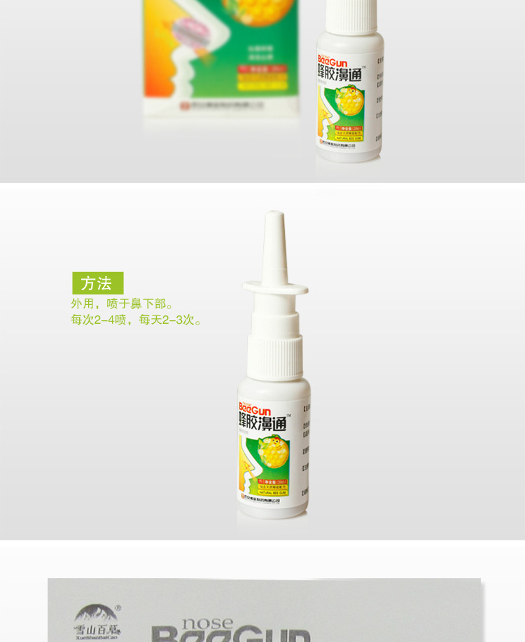 【產(chǎn)品名稱】:雪山百草牌蜂膠濞通抑菌噴劑