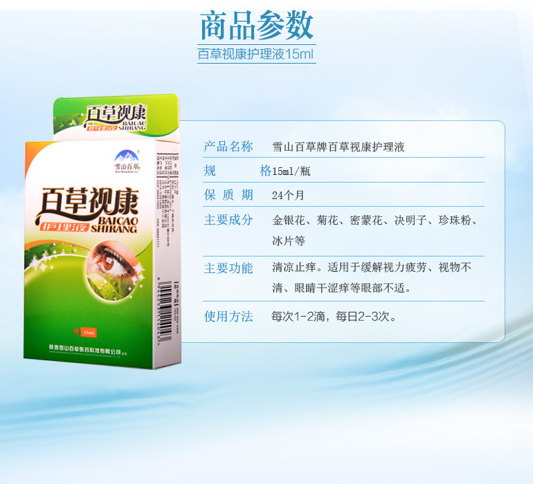 【產(chǎn)品名稱】:雪山百草牌百草視康護(hù)理液
