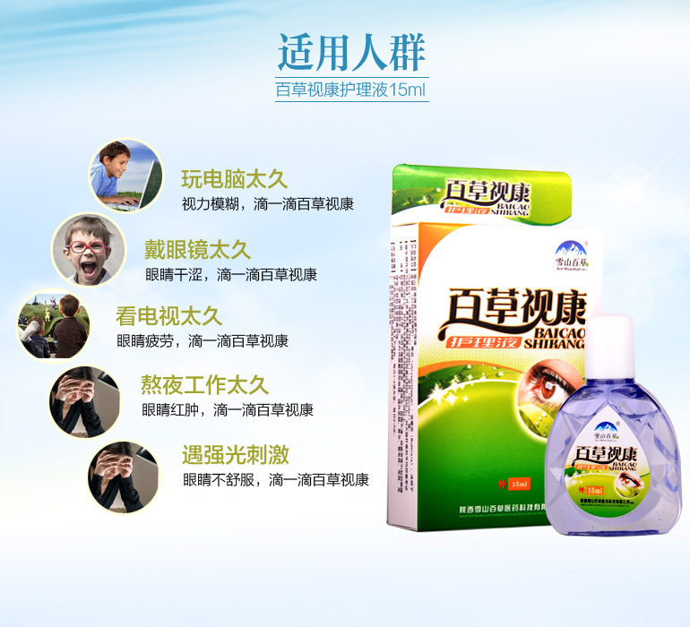 百草視康滴眼液眼藥水oem貼牌眼干眼澀眼部不適滴液產(chǎn)品說(shuō)明: