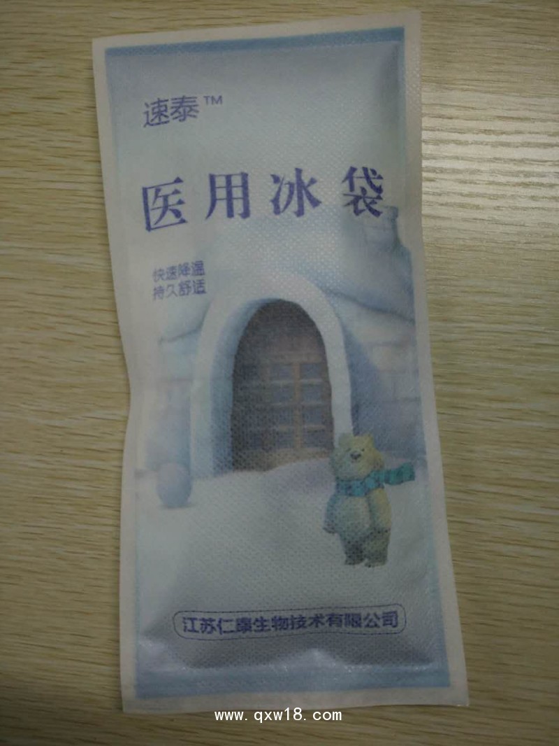 醫(yī)用冰袋的內(nèi)容物為尿素或硝酸銨、純化水,采用無毒的聚乙烯和尼龍或無紡布復(fù)合膜包裝制成,用于物理退熱、冷敷理療。僅用于閉合性軟組織
