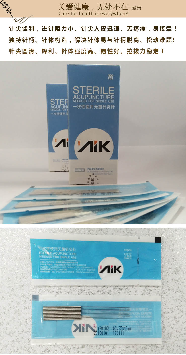 愛康牌一次性使用無菌針灸針產(chǎn)品說明: