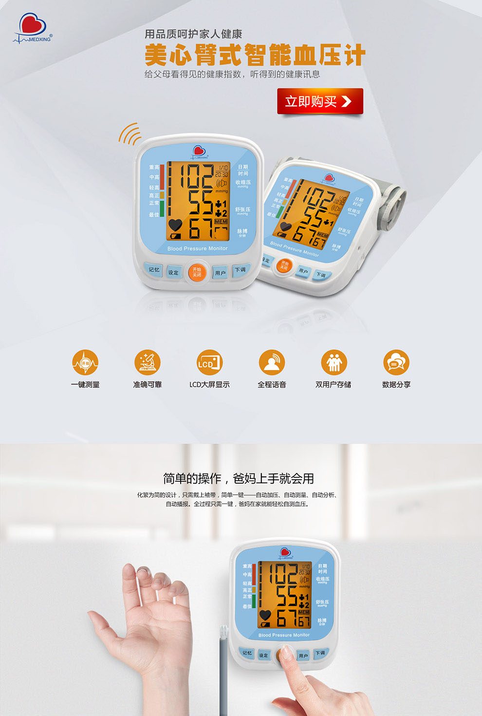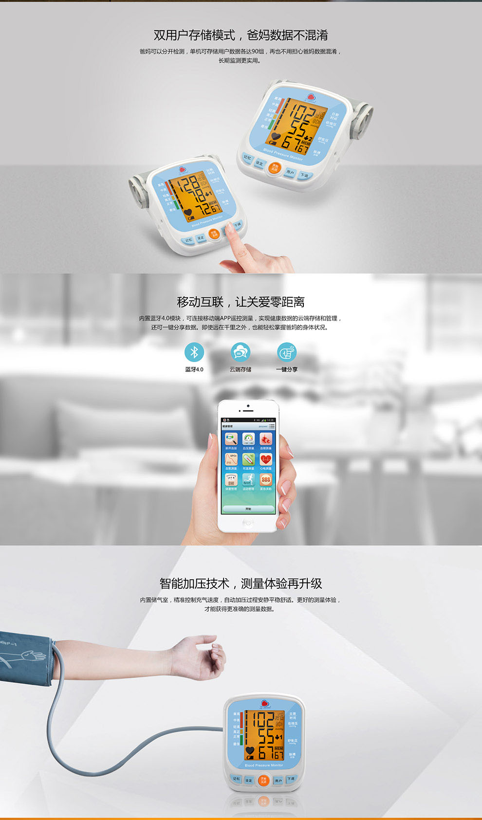 ESM201B 家用藍牙連接臂式智能血壓計產(chǎn)品說明: