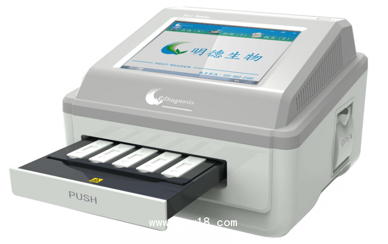 QMT8000免疫定量分析儀配套明德生物所有的專用試劑盒,定量檢測人全血/血清/血漿/尿液中PCT、CRP、PCT-CRP、cTnI、心梗三項(cTnI、CK-MB、Myo)、H-FABP、NT-proBNP、D-Dimer、S100-β、Lp-PLA2、MPO、CysC、NGAL、MAU、HbAlc、C-Peptide、INS、β-HCG、IGFBP-1、PAPP-A、PGI、PGII、HP、AFP、PSA、Fer、BGP、IgE、Lp(a)等20多種標志物的含量,檢測結(jié)果用于輔助臨床診斷。