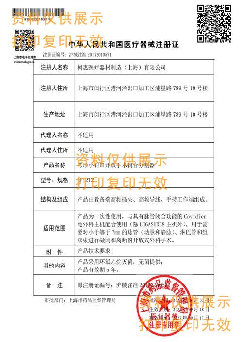 ? ? 該產(chǎn)品是與高頻電外科手術(shù)系統(tǒng)聯(lián)用的手術(shù)器械,適用于外科開放手術(shù)和腹腔鏡手術(shù)中閉合最大達7mm的血管、淋巴管和組織束,可進行電外科切割、凝血或者血管結(jié)扎、組織束閉合處