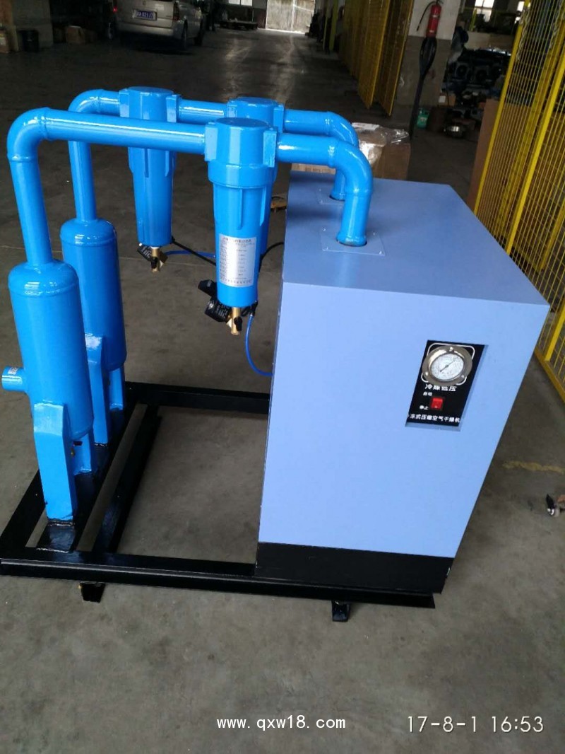 3、干燥機:壓縮空氣的干燥是相對的概念,壓縮空氣在使用過程中只要有溫度的變化就會有水份的析出,只是析出水份的量多少而言。干燥機的使用可以相對的潔凈空氣,使壓縮空氣達到使用標(biāo)準(zhǔn)。干燥機的分類有“冷凍式干燥機”、“吸附式干燥機”、等。