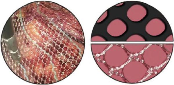 CICAT有效網(wǎng)孔率高達61%,新的組織可以從網(wǎng)片上下方向通過超大的網(wǎng)孔增生,促進補片與人體的快速融合。