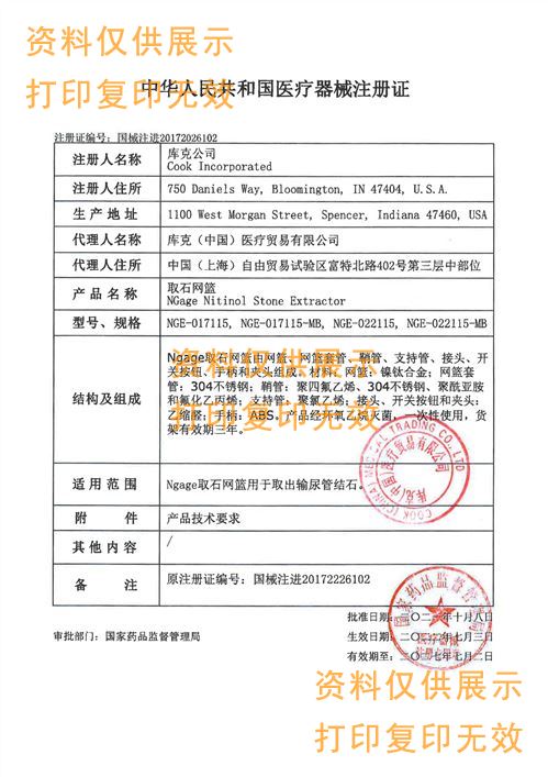 美國庫克 COOK取石網(wǎng)籃NGE-017115產(chǎn)品說明: