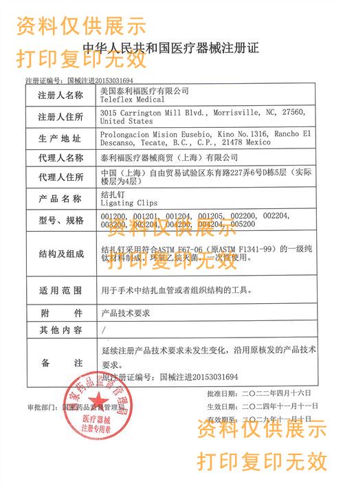 美國(guó)泰利福 Teleflex鈦釘、結(jié)扎釘001200產(chǎn)品說(shuō)明: