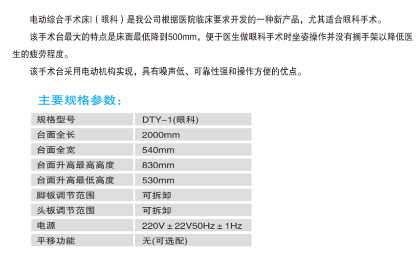 山東眾佳S13 DTY-1電動眼科手術(shù)床產(chǎn)品說明: