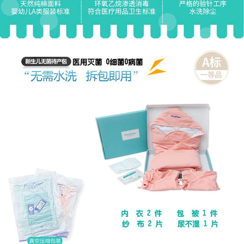 產(chǎn)房新生兒無菌待產(chǎn)包醫(yī)用滅菌嬰兒襁褓嬰兒無菌套裝產(chǎn)品說明: