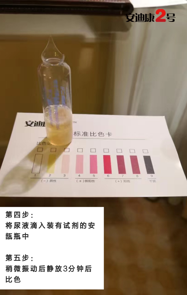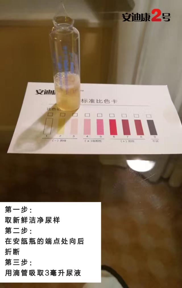 ?檢驗(yàn)原理:本試劑與尿液中的單羥酚衍生物發(fā)生特征性顯色反應(yīng),通過反應(yīng)沉淀物的顏色變化,以此判斷受試者體內(nèi)是否有相關(guān)的氨基酸異常代謝。????檢驗(yàn)方法:取新鮮清潔尿樣(最好是早晨第一次尿液)3ml加入裝有試劑的安瓿中,靜置。溫度在20℃以上時(shí),反應(yīng)結(jié)果為3分鐘以內(nèi),溫度低于20℃時(shí),可用37℃水浴加溫。將沉淀物顏色與標(biāo)準(zhǔn)色板對照以判定結(jié)果。安迪康二號主要優(yōu)勢v操作簡單--敲開安瓿瓶后可進(jìn)行自測,保護(hù)被測者隱私。v方便快捷--與被測物反應(yīng)三分鐘后觀察結(jié)果。v節(jié)省費(fèi)用--癌癥早發(fā)現(xiàn),降低醫(yī)療費(fèi)用,提高治愈率。v高效準(zhǔn)確--嚴(yán)格按照說明書操作,反應(yīng)結(jié)果與疾病相關(guān)度可達(dá)99%。