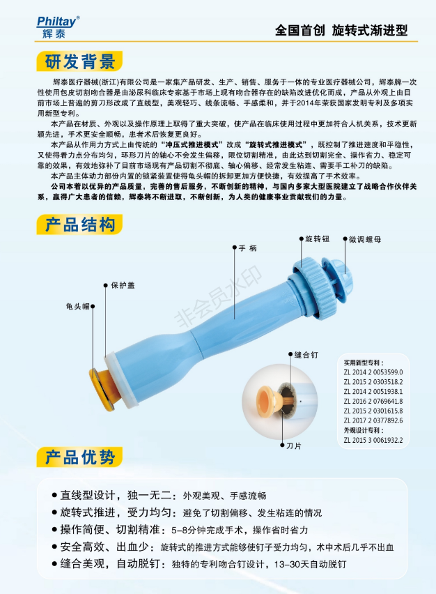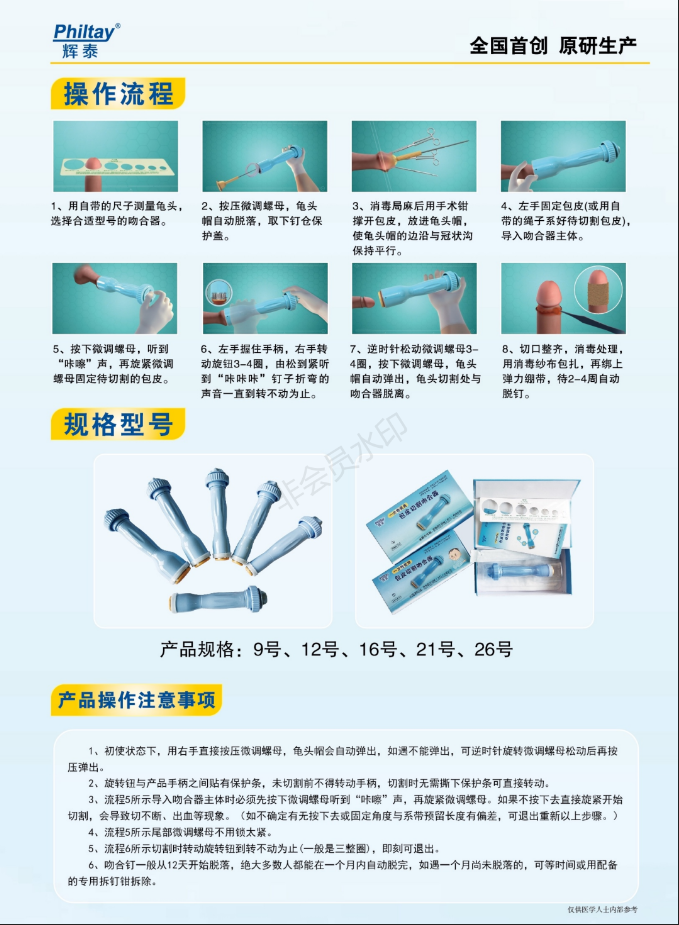 “輝泰”牌 一次性使用 包皮切割吻合器產品說明:
