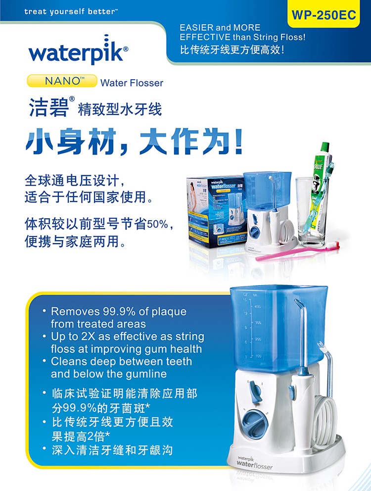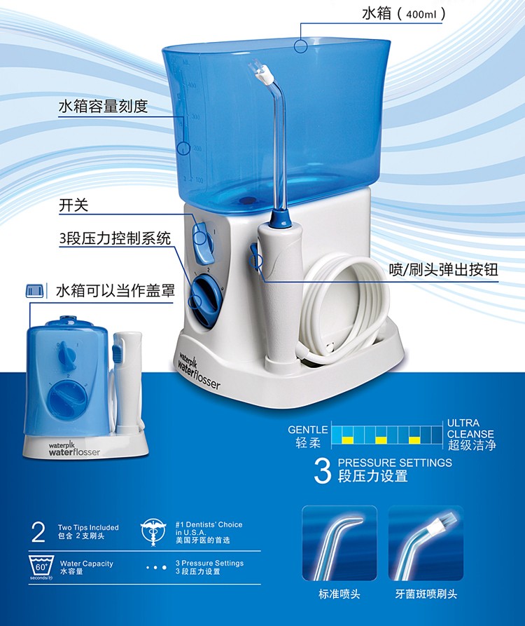 美國潔碧waterpik WP-250EC沖牙器水牙線產(chǎn)品說明: