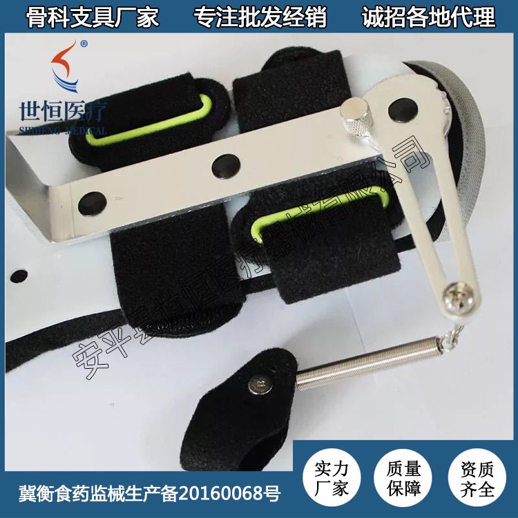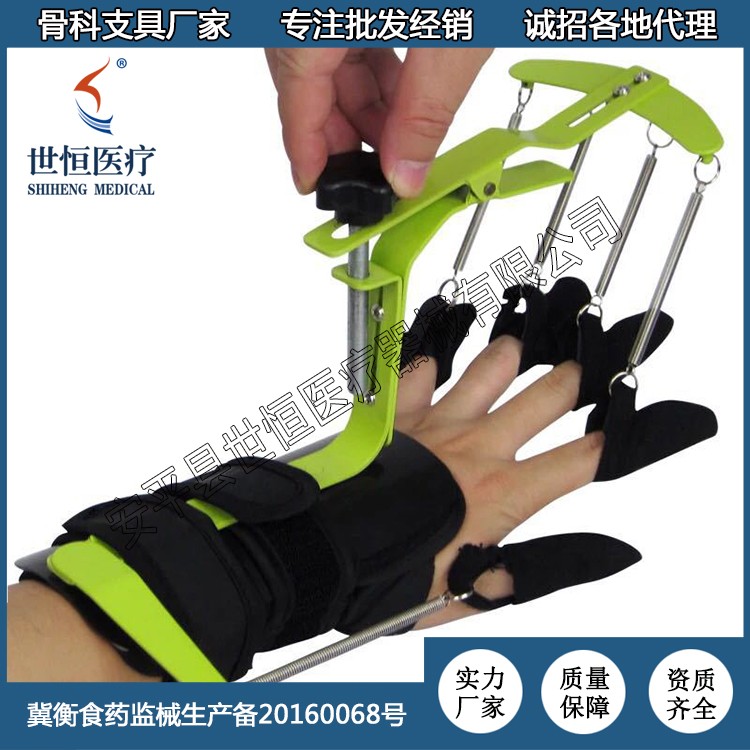 2、依靠金屬支架上的拉力彈簧,使手指及腕關(guān)節(jié)保存背
